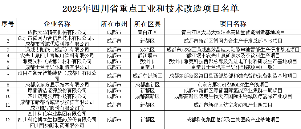 3月31日,四川省经济和信息化厅发布经信系统重点调度的2025年500个重点工业和技术改造项目名单,项目总投资17048.9亿元,2025年计划投资3291.6亿元。从项目类别看,新开工类项目154个,在建类项目200个,竣工投产类项目146个。